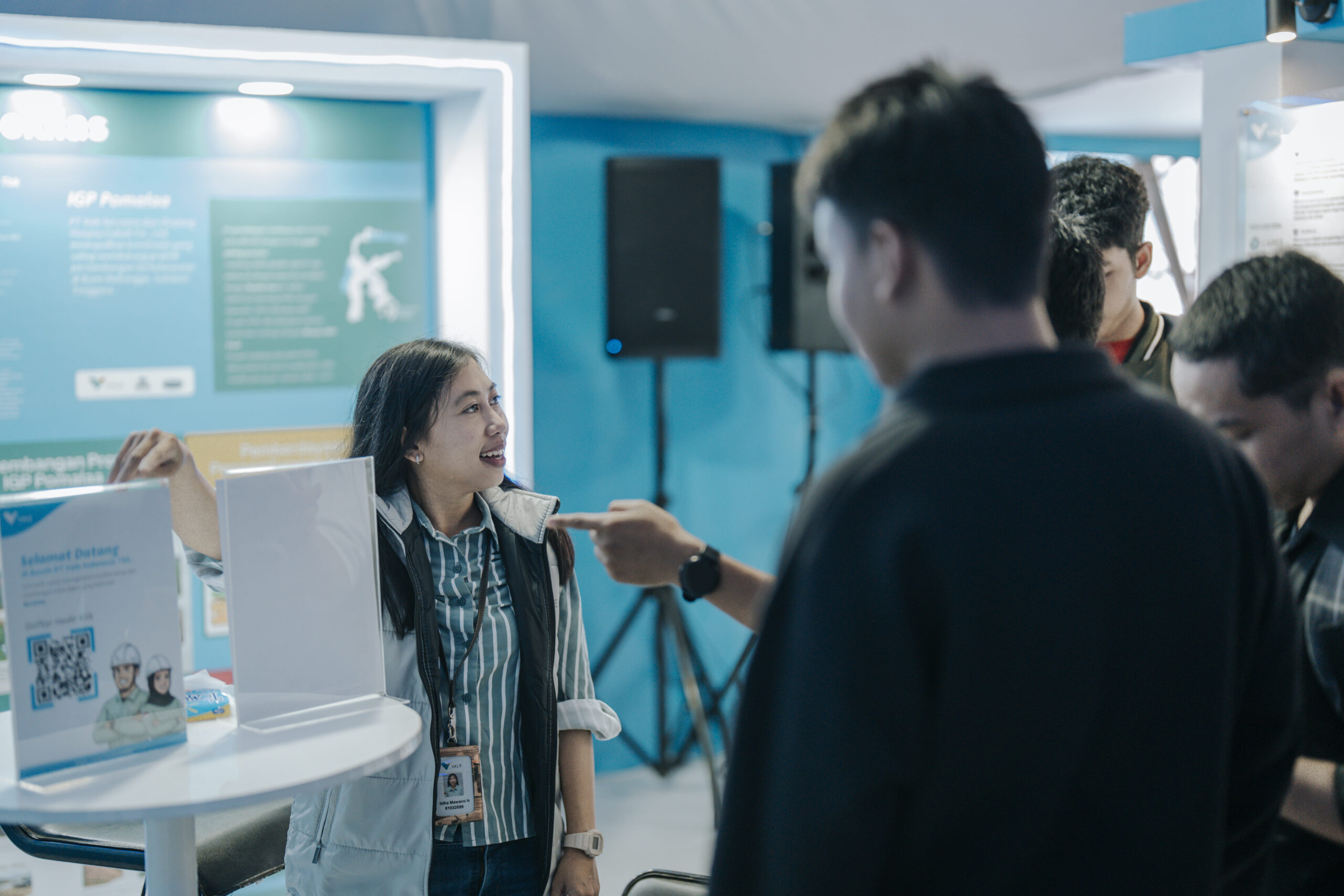 Ridwan, seorang mahasiswa yang pernah melakukan praktik kerja lapangan (PKL) di site Pomalaa. memuji kerapian stan dan memberikan kesaksian mengenai disiplin tinggi PT Vale terhadap keselamatan kerja.