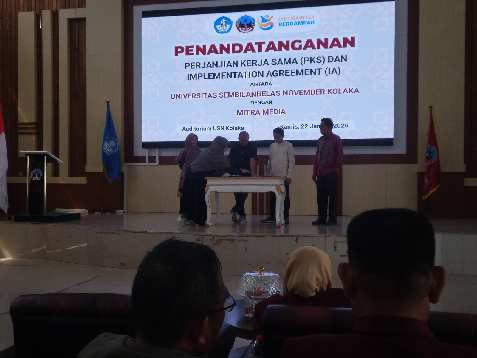 KOLAKA,Kolakanews – Universitas Sembilanbelas November (USN) Kolaka menegaskan komitmen dalam memperkuat kemitraan dengan media melalui penandatanganan Perjanjian Kerja Sama (PKS) dan Implementation Agreement (IA) yang digelar di Auditorium USN, Rabu (22/1).